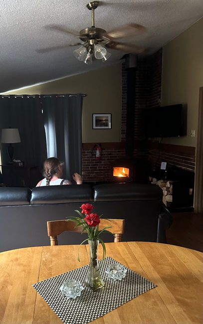 THIS Winter we would love to welcome you into the Chalets. Tucked in among the trees, the Chalets make a perfect winter hide-away; offering wood burning fireplaces with the wood included in the rate. Fully equipped kitchens with propane BBQ- so plan on treating yourself. The bathrooms feature two person message tub, rain showers…..and heated floors for some fun. Viewing entertainment include satellite, over 100 movies to borrow and WiFi (if you wish to bring your own devices) ….and relax, relax, relax!!