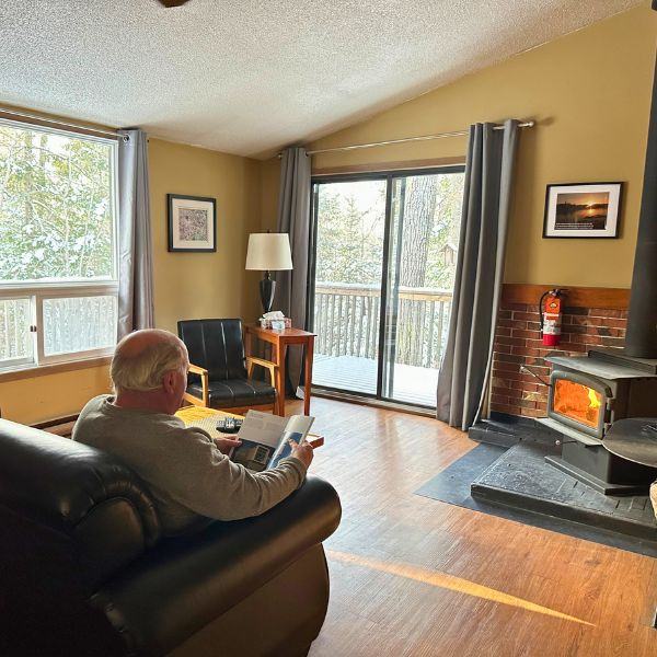 We believe that a seniors getaway in Whiteshell Provincial Park is synonymous with ease. We’ve taken care to ensure that our accommodations provide the comforts of home, including full kitchens and comfortable living rooms featuring wood fireplaces, so you can focus on the experience rather than the logistics. For those 65+, please notify us when booking for more information on our seniors discount. Everything you need is within reach, from the easy-to-access docks for morning fishing to the riverside bonfire areas where the stories of the day are shared.