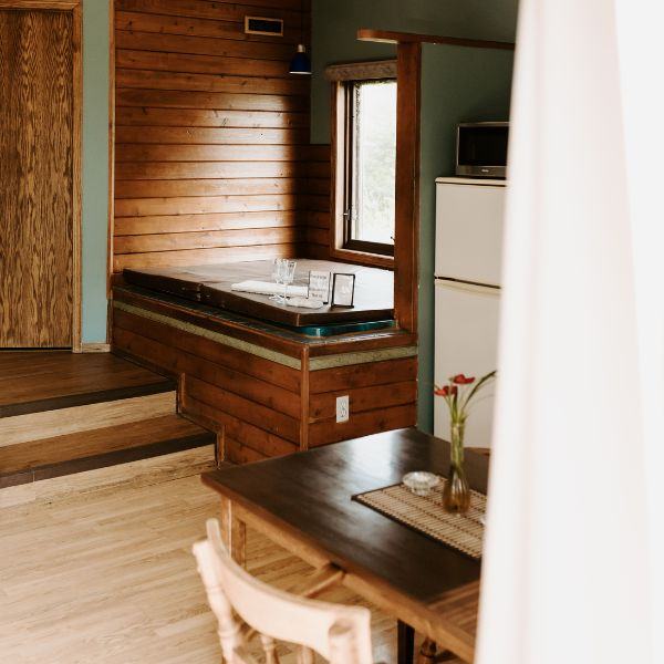 Our chalets are designed to be warm havens against the cold. There is nothing quite like watching a heavy snowfall from the comfort of a massage tub or reading a book by the steady glow of a crackling fire. From the comfort of your chalet, you may spot deer strolling across the property, flying squirrels moving between the trees, and a steady gathering of birds drawn in by our winter feeding program.