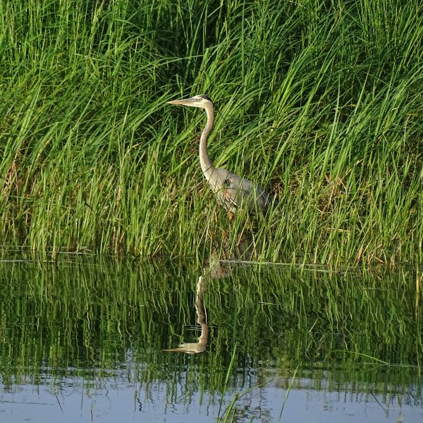 Deer often walk along the forest edge in the early morning or evening, while foxes sometimes dash between the trees. Along the trails and shoreline, you might hear the calls of grouse or blue herons, the croaks of frogs, or the steady chitter-chatter of squirrels moving through the brush.