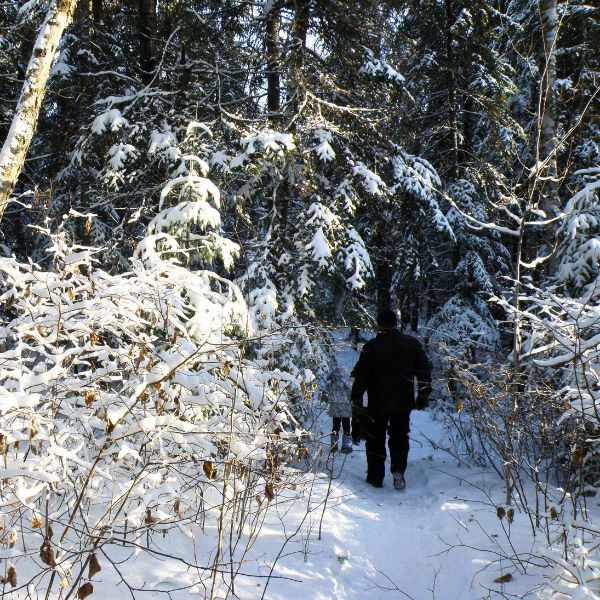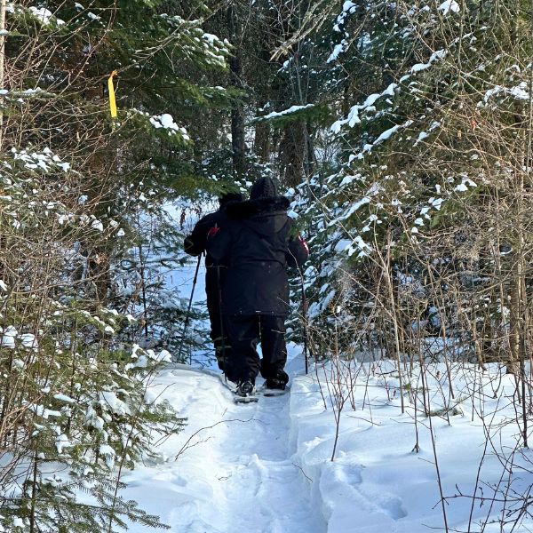 While ski trails are reserved for skiing, much of the surrounding forest and shoreline can be explored on snowshoes. The River Trail remains a favourite route in winter, offering a steady trek through the trees alongside the Rennie River. At the end of the River Trail, you’ll find the 4.3 km Amisk Trail loop, which also provides a longer option for those wanting to extend their outing.