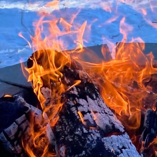 Bring warm layers, a thermos, and settle in as the fire burns against the winter backdrop.