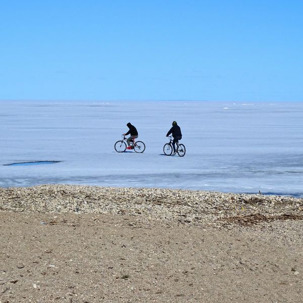 Many guests head out onto the frozen lake itself, where open space and snow drifts create an entirely different perspective of the area. Snowshoeing allows you to move at your own pace, step off the trail when needed, and explore areas that aren’t accessible in other seasons.