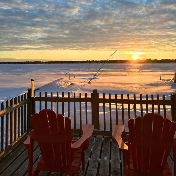 Winter at Inverness Falls Resort brings a different way to spend time outdoors. The lake freezes, the trails transition into ski and snowshoe routes, and the forest and shoreline take on a slower pace. It’s a season built around ice fishing, winter trail use, wildlife viewing, and gathering by the fire once the day is done.