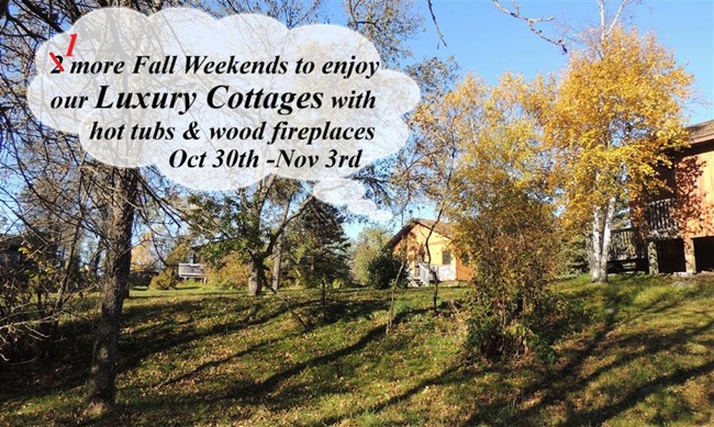 We have the Hot Tub Cottages and Cabins open for one more weekend this fall….. and we have a Web Special for this weekend